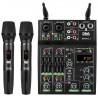 DNA MIXMIC 2 to wszechstronny, bezprzewodowy zestaw mikrofonowy z mikserem audio, idealny do zastosowań scenicznych, prezentacji, pokazów i występów ulicznych. Zestaw zawiera 5-kanałowy mikser analogowy z wbudowanym odbiornikiem UHF oraz dwa dynamiczne mikrofony bezprzewodowe. Mikser jest lekki, kompaktowy i zasilany przez USB, co czyni go niezwykle mobilnym. Posiada 2 wejścia mikrofonowo-liniowe, korektor barwowy oraz możliwość dodawania efektów. Dodatkowo, DNA MIXMIC 2 wyposażono w odtwarzacz MP3/WAV, Bluetooth, wejście AUX i port USB, umożliwiając odtwarzanie i miksowanie dźwięku z różnych źródeł. Dynamiczne mikrofony zapewniają stabilną transmisję dźwięku, a ich długi czas pracy do 6 godzin sprawia, że są idealne na dłuższe wydarzenia. Zestaw zawiera również przewody USB, nakładki zapobiegające toczeniu się mikrofonów oraz instrukcję obsługi w języku polskim i angielskim.