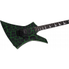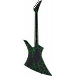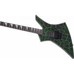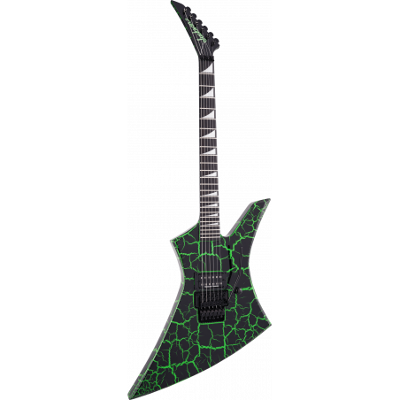 Jackson Pro Series Signature Brandon Ellis Kelly to wyjątkowa gitara, stworzona we współpracy z Brandonem Ellisem, gitarzystą The Black Dahlia Murder. Ellis, znany z mistrzowskiej techniki, zyskał sławę jako gitarzysta prowadzący na albumie "Nightbringers" z 2017 roku. Model Kelly Green Crackle odzwierciedla jego agresywny styl i techniczne umiejętności. Gitara posiada korpus z topoli i gryf klonowy w konstrukcji Neck-Through-Body, co zapewnia doskonały sustain i stabilność. Wzmocniona grafitowymi prętami szyjka, jest odporna na zmiany temperatury i wilgotności cp zapobiega jej deformowaniu się. Hebanowa podstrunnica o zmiennym promieniu i wyjątkowo wygodny profil gryfu sprzyjają szybkiej grze. Za brzmienie odpowiada humbucker Seymour Duncan® Parallel Axis, dostarczający potężnego sygnału i świetnego sustainu. System tremolo Floyd Rose® serii 1000 zapewnia niezawodną stabilność strojenia. Całość uzupełniają strap locki Dunlop® i wyraziste wykończenie Green Crackle z czarnym osprzętem.