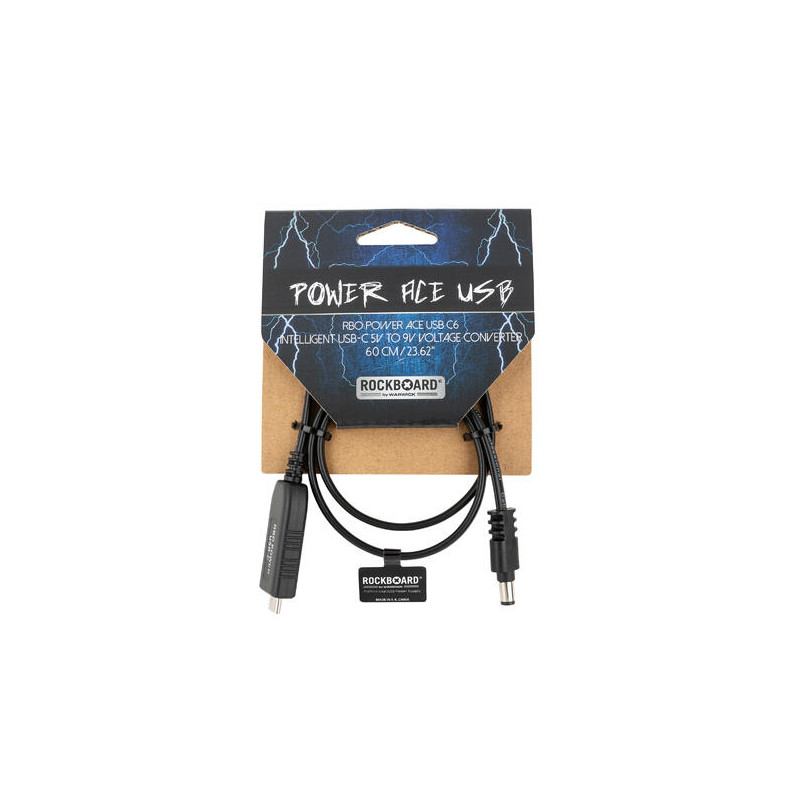 Seria Power ACE USB zapewnia zasilanie efektów z dowolnego zasilacza USB 5 V (np. ładowarki telefonu) i umożliwia zasilanie bateryjne przy użyciu powerbanków 5 V. Konwertuje wyjście 5 V na stabilne 9 VDC, odpowiednie dla większości efektów. Adapter kompatybilny jest z efektami ze złączem DC 2,1 x 5,5 mm. Uwaga: nie obsługuje portów Power Delivery (PD). Kabel Power ACE USB służy wyłącznie do zasilania urządzeń 9 VDC i nie powinien być używany z zasilaczem (multi), aby uniknąć uszkodzeń.