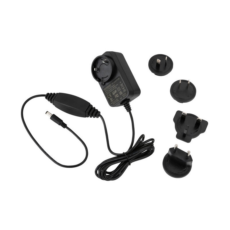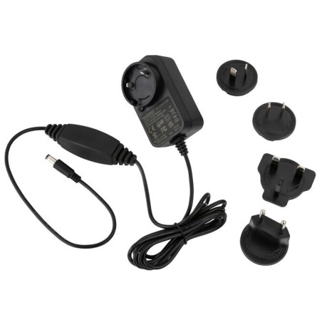 • Złącze baryłkowe 2,1 x 5,5 mm (-) w środku - wymienne adaptery wtyczek dla wielu regionów (UE, UK, US/CA, AU/NZ) - długość kabla: 1,90 m