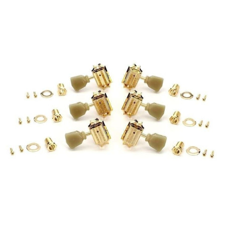 Gibson MH-020 Vintage Gold Machine Heads / Pearloid Buttons – klucze gitarowe to stylowe mechaniki w wykończeniu vintage gold, stworzone dla gitarzystów ceniących klasyczny wygląd, wysoką jakość i precyzyjne strojenie. Wyposażone w eleganckie główki typu pearloid, inspirowane tradycyjnymi kluczami stosowanymi w gitarach Gibson od lat 50., dodają instrumentowi niepowtarzalnego charakteru retro.