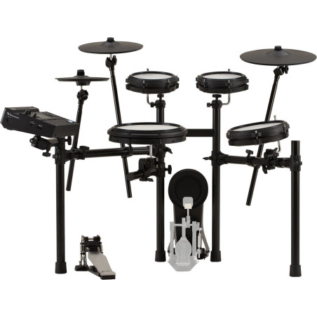 Roland TD-313 + MDS-Compact to kompletny zestaw dla perkusistów na każdym poziomie zaawansowania. Świetnie sprawdza się do cichego ćwiczenia w domu, nauki w szkołach muzycznych, a także nagrań w studiu i występów scenicznych. Dzięki kompaktowej konstrukcji i bezprzewodowej łączności Bluetooth stanowi doskonałe połączenie mobilności, profesjonalizmu i nowoczesnej technologii w jednym zestawie.